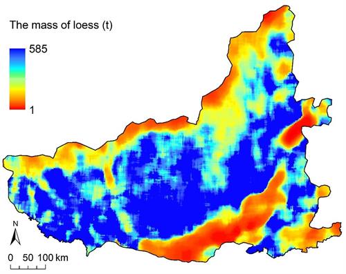 2. 明确了黄土高原黄土数量属性。土壤包括基岩之上的沉积物不仅是关键的自然资源,也因提供给植物水分和养分而是生态系统的重要组成部分。然而,由于水力、风力和重力的作用,自然的土壤一直处于流失之中,形成土壤侵蚀。由于土壤侵蚀带走了表土的细土,导致土层变薄、水分养分的流失,严重威胁着生态系统的健康。量化黄土高原黄土的数量是研究黄土堆积和侵蚀、确定区域水土资源容量的基础。